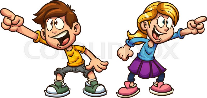 Cartoon boy and girl pointing at something. Vector clip ... - cartoon drawing girl proposing boy sketch