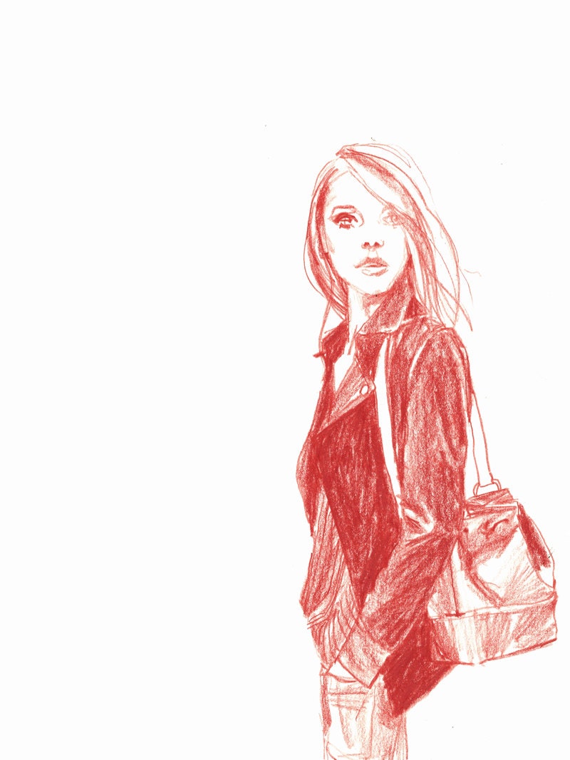 Original Sketch 9 x 12 Fashion Girl Holding Bag - school bag girl with backpack drawing easy