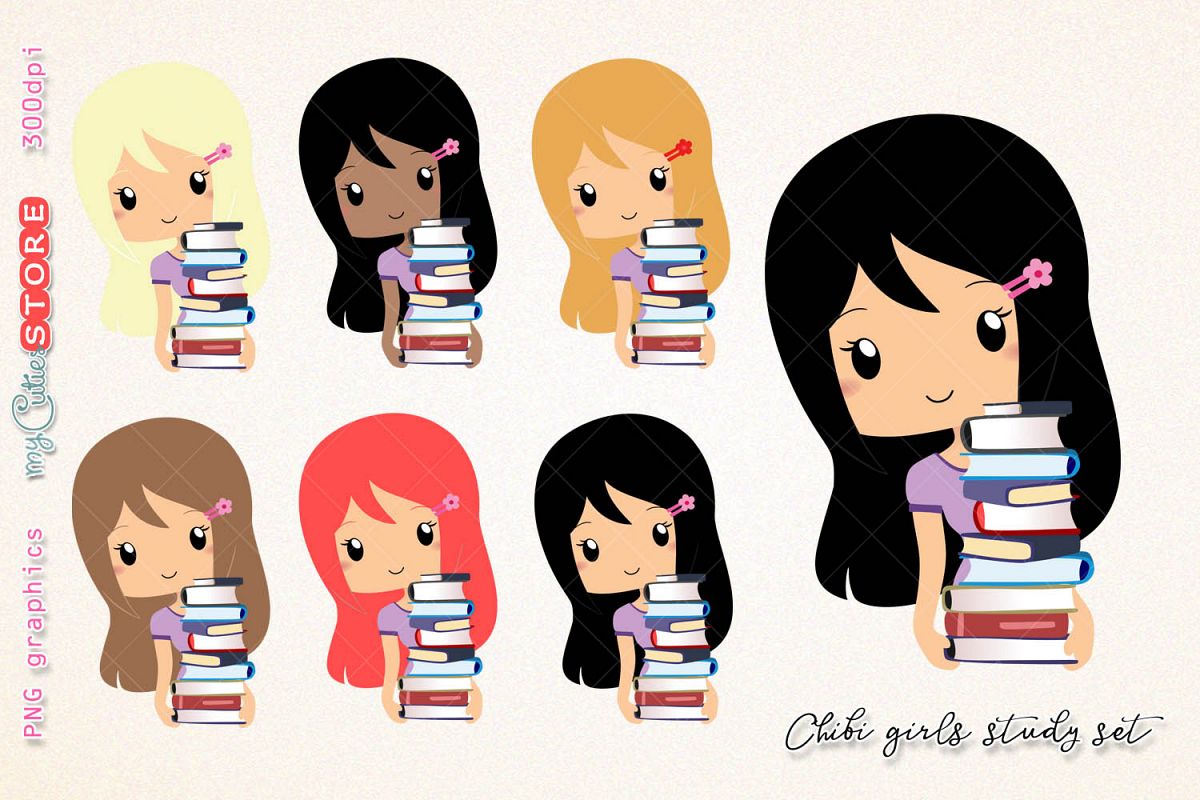 Study chibi girl clipart, woman going library clip art ... - anime girl drawing cute girl studying cartoon